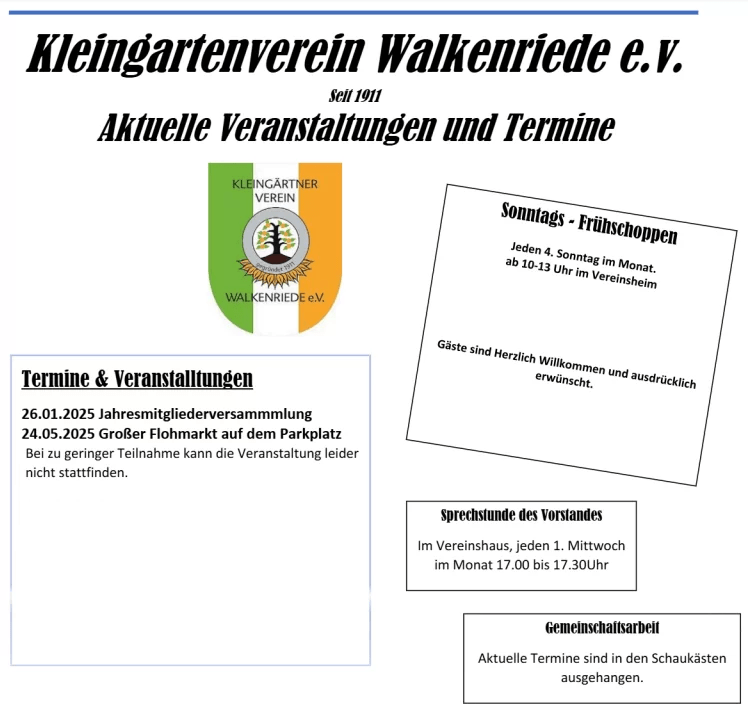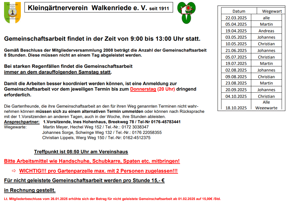 im Allgemeinen  jeden 1. Mittwoch im Monat zwischen 17:00 und 17:30 Uhr  findet die Sprechstunde mit dem Vorstand statt.